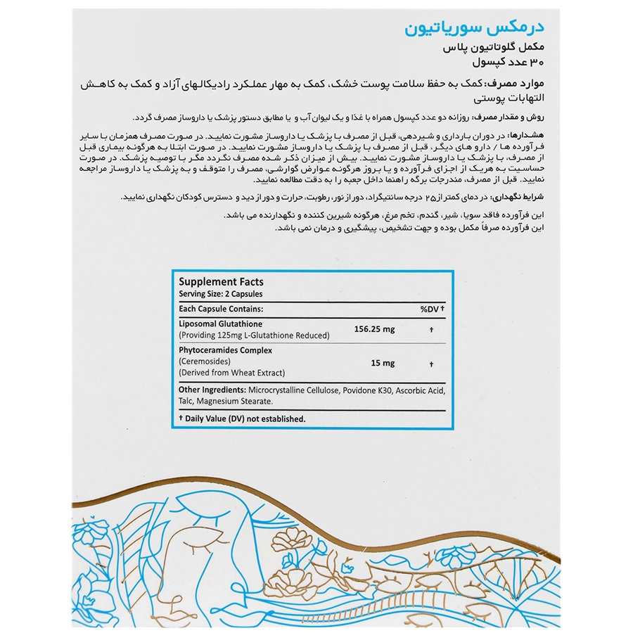 سوریاتیون مکملی با فرمولاسیون خاص، شامل گلوتاتیون لیپوزومال و فیتوسرامید است که برای کمک به سلامت پوست خشک و بهبود علائم پسوریازیس طراحی شده است.